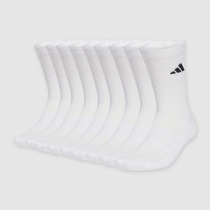 Čarape Essentials Cushioned Crew Sock kombinacija su svakodnevne udobnosti i stila. Klasičnog dizajna, ove čarape odličan su izbor, bilo da idete u teretanu ili se samo opuštate kod kuće. Visina do pola lista osigurava dostatnu pokrivenost, što ove čarape čini prikladnima za nošenje s omiljenim tenisicama ili čizmama. Funkcija ojastučenja osigurava udobnost. Prozračni materijali povećavaju izdržljivost. adidas vam donosi paket čarapa koje spajaju jednostavnost i funkcionalnost. Nosite ih i osjetite razliku.
