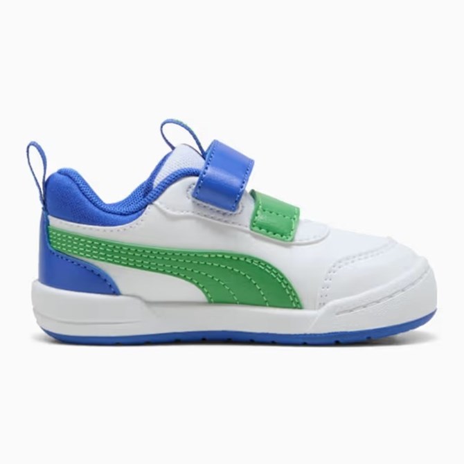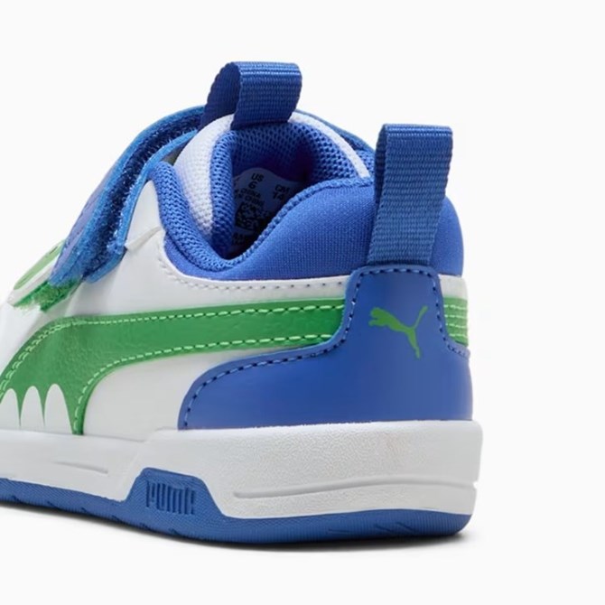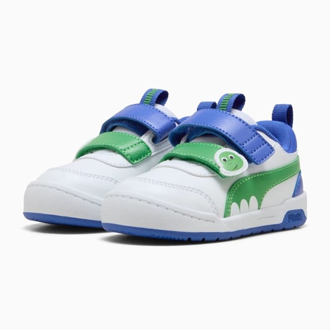 Predstavljamo Multiflex, novi osnovni model za svakodnevno nošenje za najmlađe. Ove tenisice, koje će izmamiti osmijeh ljubiteljima dinosaura, imaju detalje s dinosaurima na trakama te PUMA Formstrip inspiriran dinosaurom. KinderFit uložak pomaže osigurati pravilno pristajanje.