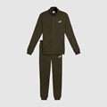 Gornji dio ima visoki ovratnik i rebraste manžete, dok hlače nude elastični pojas s unutarnjim vezicama.
